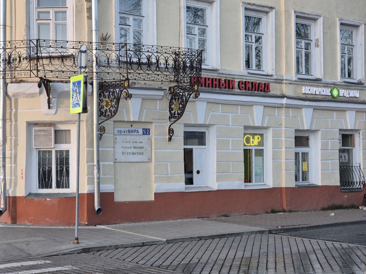 Если возьмём ещё правее и отправимся вдоль проспекта Мира, то нас ждёт ещё одна занимательная деталь — табличка в честь великого русского драматурга Александра Островского. Сообщает она о том, что в этом доме Александр Николаевич когда-то жил.