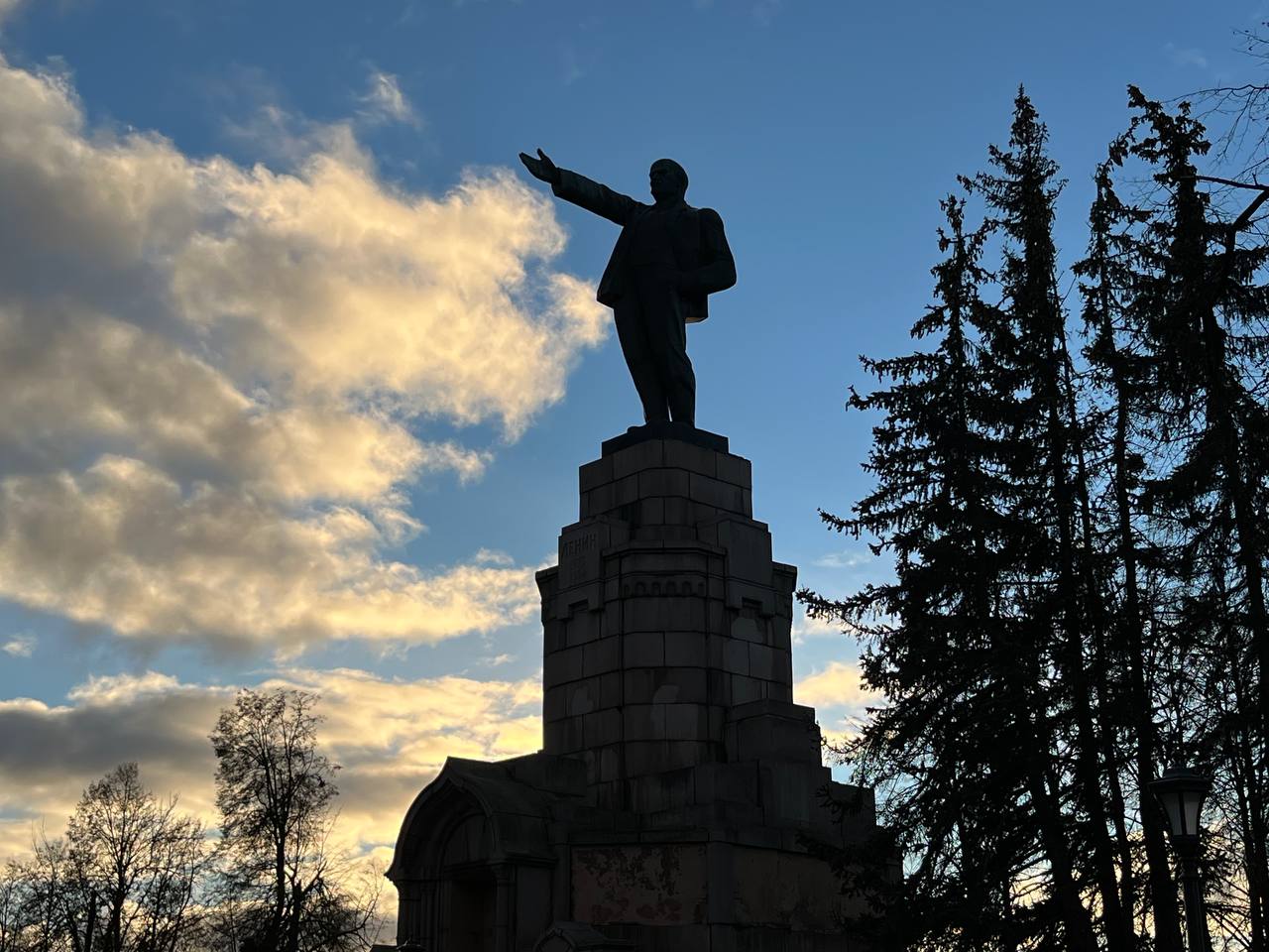 Памятник Владимиру Ильичу, установленный в центральном парке Костромы был открыт почти сто лет назад — в мае 1928 года. Фигура вождя мирового пролетариата замыкает перспективу на главной парковой аллее. Но, как я оговорился ранее, примечателен он не только тем, что является визуальной доминантой. Строго говоря, поставлен он на весьма скандальном постаменте. Потому что ещё в 1903 году, к юбилею правящей династии Романовых, в Костроме хотели поставить памятник именно царскому роду. Но пришла революция и уже отлитые фигуры поставить не успели, а отправили на переплавку. Деньги использовали на нужны города. Всё практично — по-рабочему. Первоначально вождь был бетонный. Потом скульптуру отлили уже из металла.