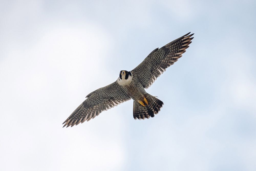 Как правило, трансляция начинается в период насиживания кладки, когда самка будет постоянно находиться на выступе крыши, а самец – заниматься охотой и добычей пищи для матери будущего потомства. Немного фактов. Кладка яиц происходит после 19-21 дней периода «брачных танцев» по возвращению сапсанов, и обычно в ней от 2 до 4 яиц – самка откладывает их через каждые 48 часов. Период насиживания длится от 33 до 35 дней, и семейство соколов пополняется новыми птенцами, которые к лету уже встают на крыло и, окрепнув, покидают родное гнездо.