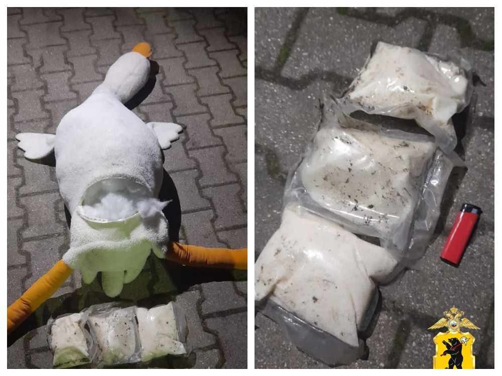 Как сообщили в УМВД России по Ярославской области, 21-летнего гастролёра задержали в одной из гостиниц Ярославского района. В ходе осмотра его «Фольксвагена», припаркованного у отеля, был найден плюшевый гусь. В нём — три свёртка.