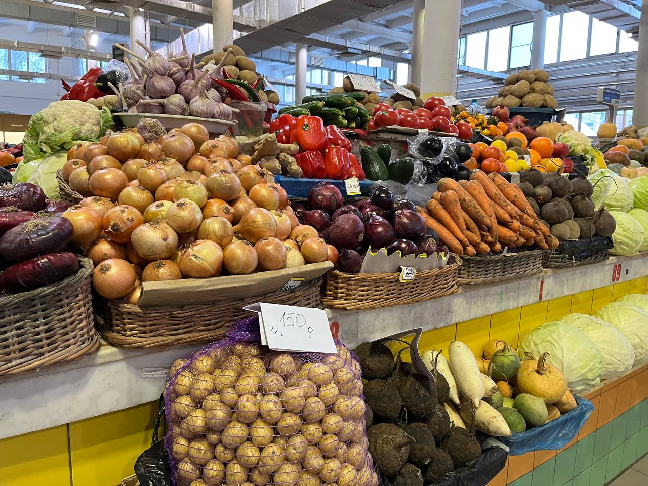 — Конечно, никуда без картошки — за 3 упакованных килограмма в супермаркете можно отдать по 59 рублей за кило. Весовой картофель — от 37 до 90 рублей за килограмм. А вот на рынке килограмм картошки обойдётся примерно в 60-70 рублей.