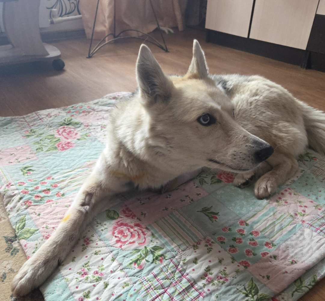 «Наши волонтёры навестили её. Привезли корм, консервы и необходимые препараты для лечения. Дина лежит тихо и смотрит своими большими доверчивыми глазами. Ночью она скулила — ей было очень больно. После обезболивания смогла немного уснуть», — рассказали в АНБО «Лохматый друг».