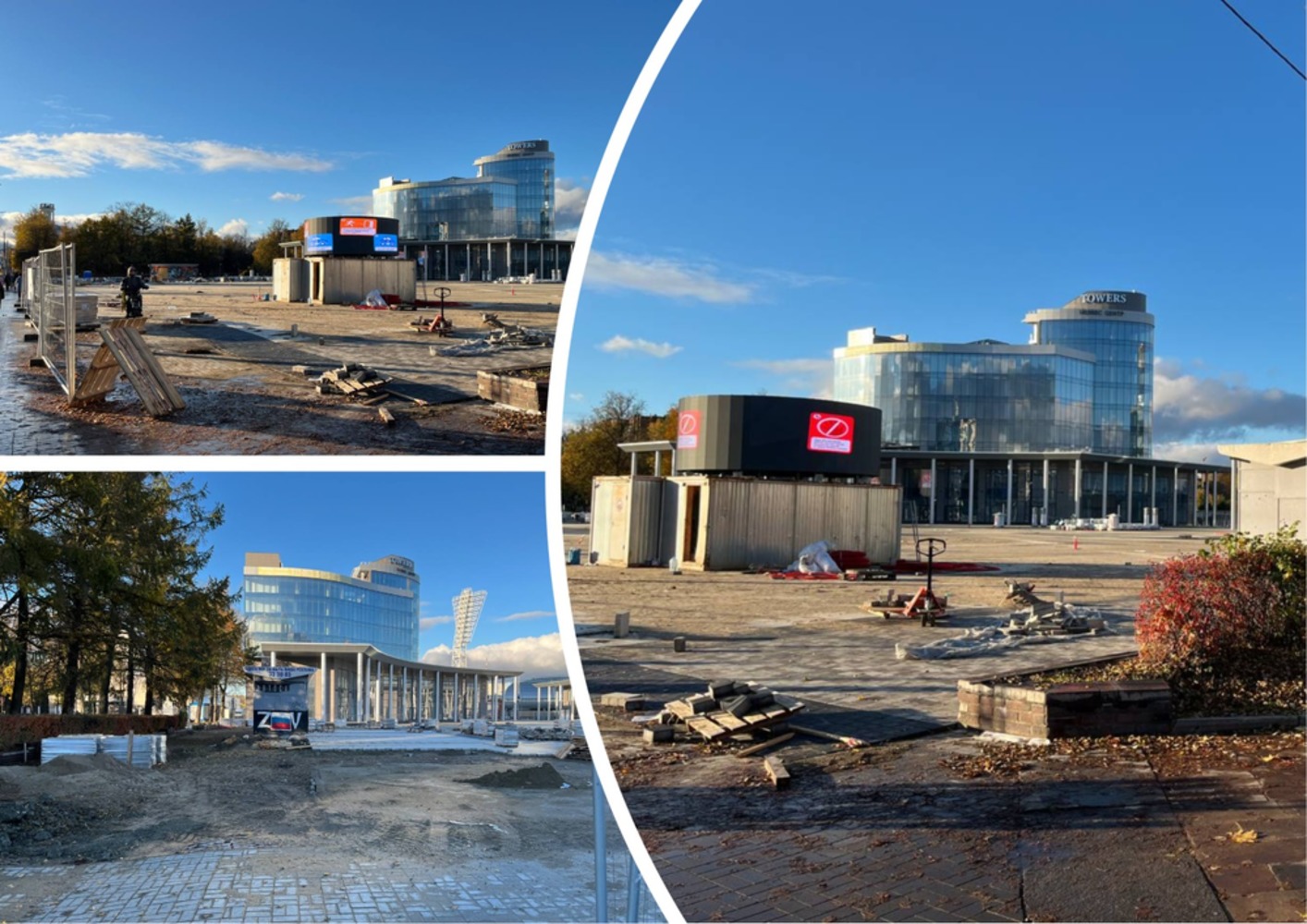 Ограждение, установленное с двух сторон от площади Труда, было демонтировано. На самом объекте ещё продолжаются работы, вокруг лежит довольно много блоков плитки, а какие-то участки территории и вовсе представляют собой голую землю.
