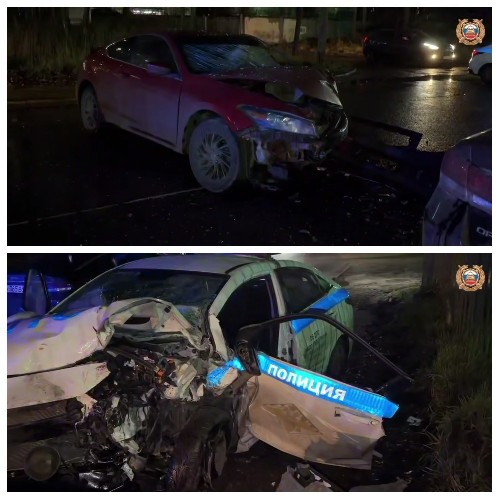 Авария произошла вечером 4 ноября на Республиканском проезде в Ярославле. В 18:50 в районе дома №3 столкнулись «Хонда» и патрульный «Хёндэ Солярис».