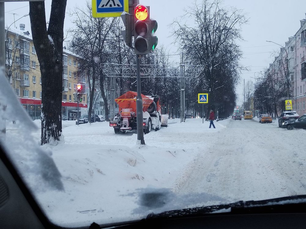 — Снегопад был сильный ночью, выпало довольно-таки большое количество осадков. Сейчас работает более 160 единиц техники. Расчищаем дороги, обрабатываем. После обработки, когда происходит срабатывание реагента, скидываем и ещё раз обрабатываем. Сейчас делаем упор основной на проездные дороги. Потом переходим на дороги второй и третьей категории. В ночь запланирован вывоз снега, — рассказал Андрей Степанов.