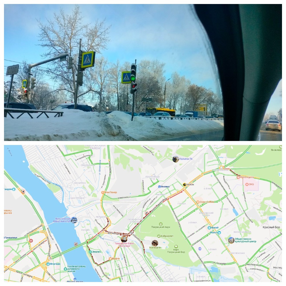 Согласно данным Яндекс.Карт достаточно серьёзный затор образовался на проспекте Авиаторов в Заволжском районе Ярославля. Он тянется примерно от перекрёстка с улицей Красноборской. А заканчивается только у выезда с улицы Дачной на Урочскую. У пути на Октябрьский мост.