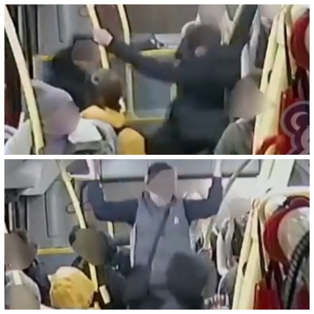 Так как камера зафиксировала прыжок с сиденья и удар ногой в грудь трапезничающему юноше. После этого молодые люди обнялись. А затем досталось уже прыгуну — он был взят на удушающий. Разнять их попытались ещё двое молодых людей. После кадры зафиксировали, как один из юношей начал подтягиваться на поручнях, пока другой в открытую пил из бутылки, в которой, судя по виду, было что-то алкогольное.