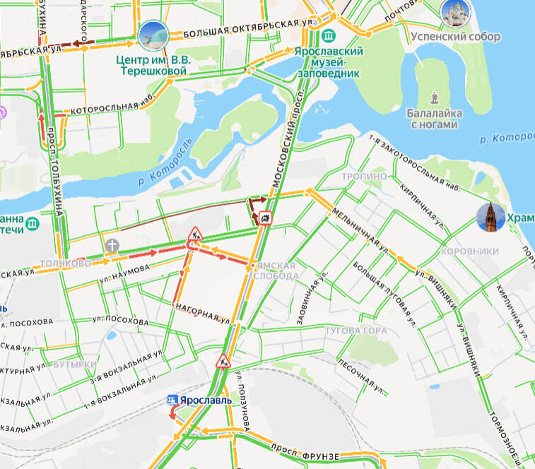 Ранее «ЯрНьюс» писал, что Московский проспект был перекрыт для движения транспорта на участке от Малой Пролетарской до улицы Наумова. Первые сообщения о перекрытии появились в районе 14:00.