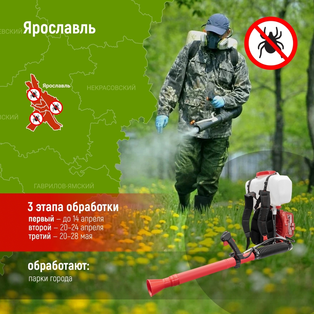О старте работ в соцсетях сообщает мэрия города. По информации властей, дезинсекция коснется парков, скверов, набережных, детских площадок и открытых территорий. Первый этап обработки продлится до 14 апреля, второй запланирован с 20 по 24 апреля, а третий пройдет с 20 по 28 мая.